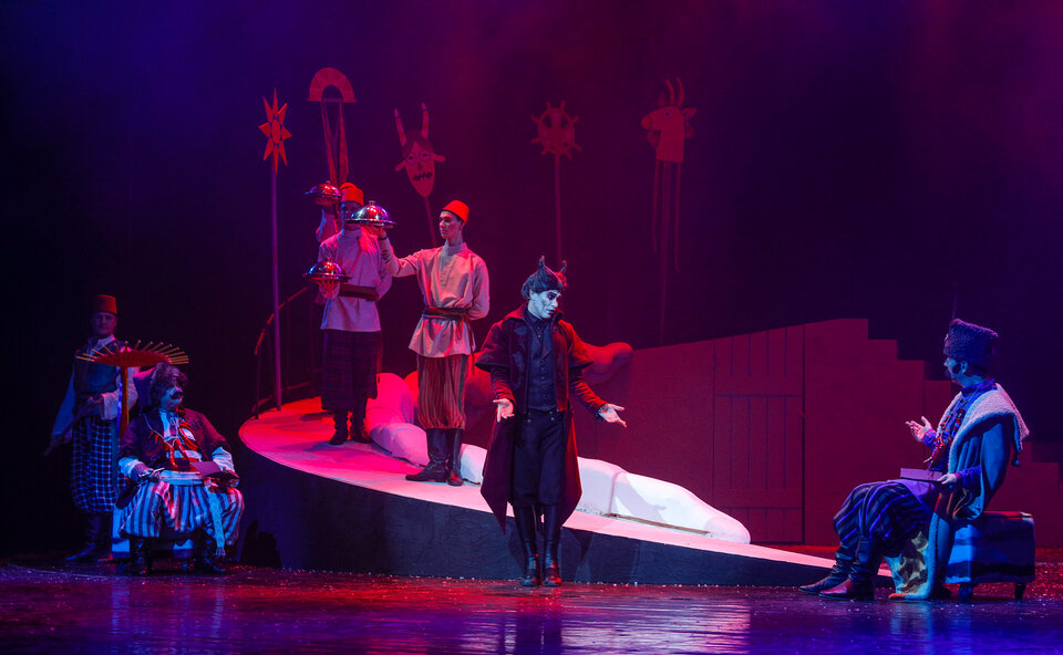 Тюменский Большой драматический театр не может отказать себе в удовольствии поработать над её сценическим воплощением! Языком музыки и танца, с юмором мы расскажем о жителях села Диканька — молодом кузнеце Вакуле, его любимой дивчине Оксане, о Солохе и ее поклонниках, об оживших галушках и полёте на Чёрте в блестящий Санкт-Петербург!