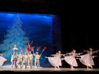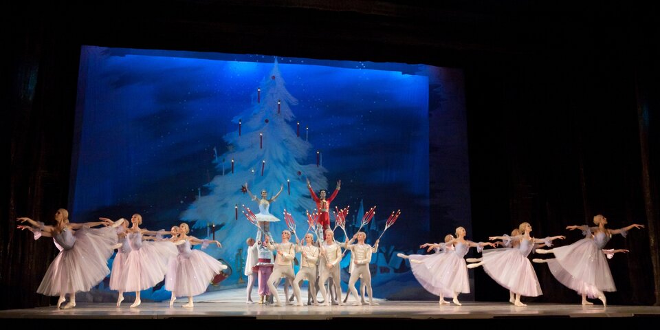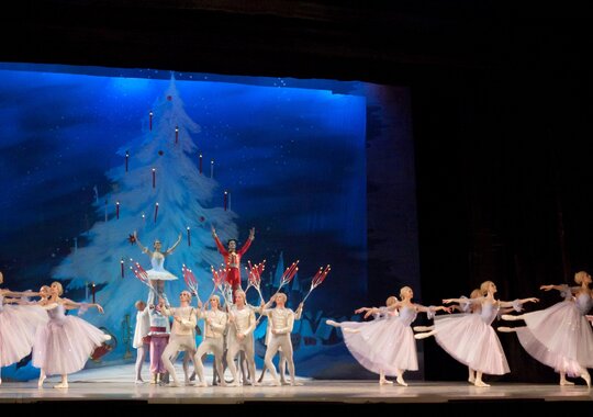 Исчезают стены дома. Мари с друзьями оказывается под куполом звёздного неба, около сказочной ёлки. В волшебном хороводе кружатся легкие снежинки. Мари и Щелкунчика манит к себе, как прекрасная мечта, мерцающая на верхушке ёлки звезда. Они садятся в волшебную ладью и устремляются к вершине. Куклы следуют за ними.