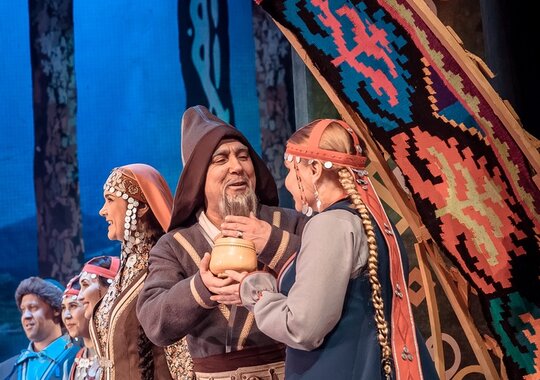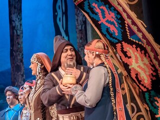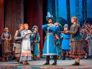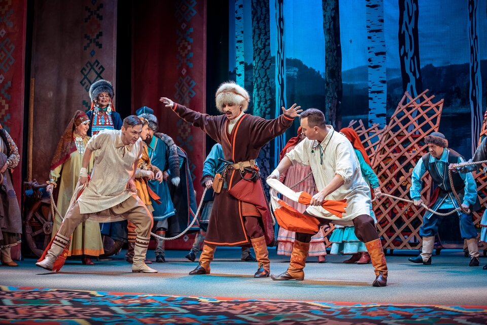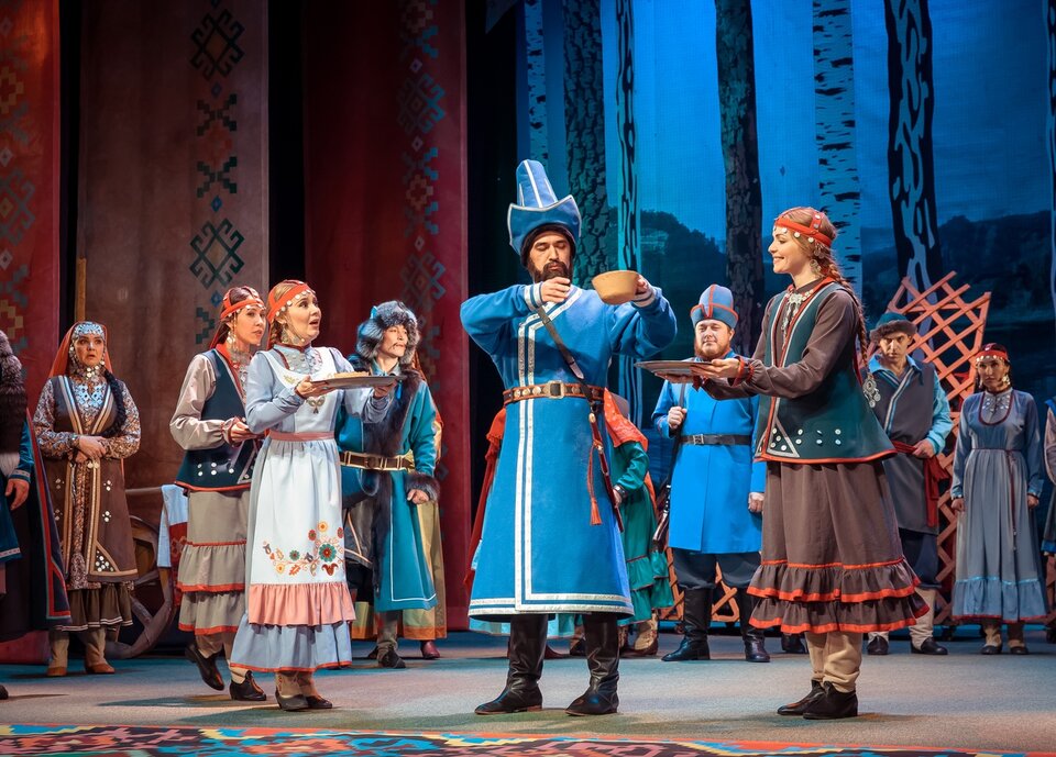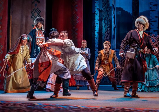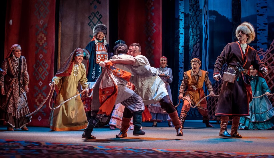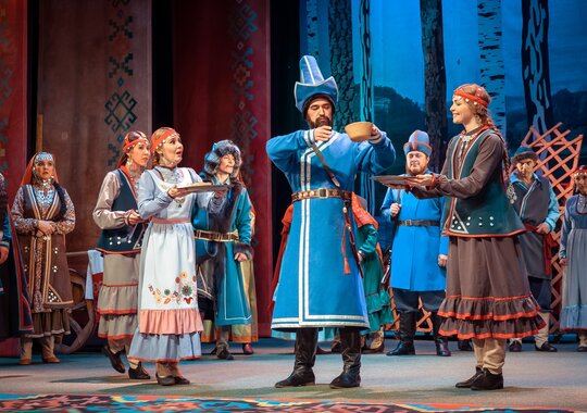 Спектакль яркий и зрелищный, наполнен песнями, дает представление о башкирских традициях и свадебных обрядах.