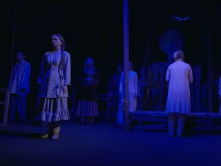 Спектакль тонкий, поэтичный, богат фольклорными мотивами.