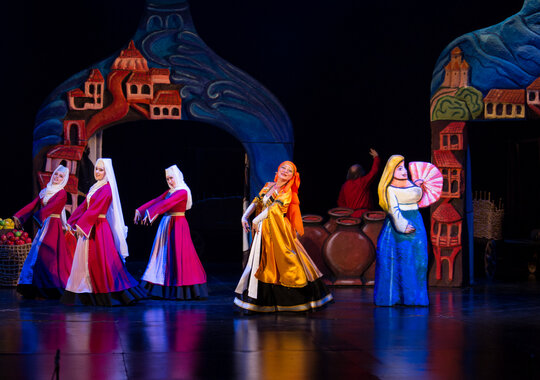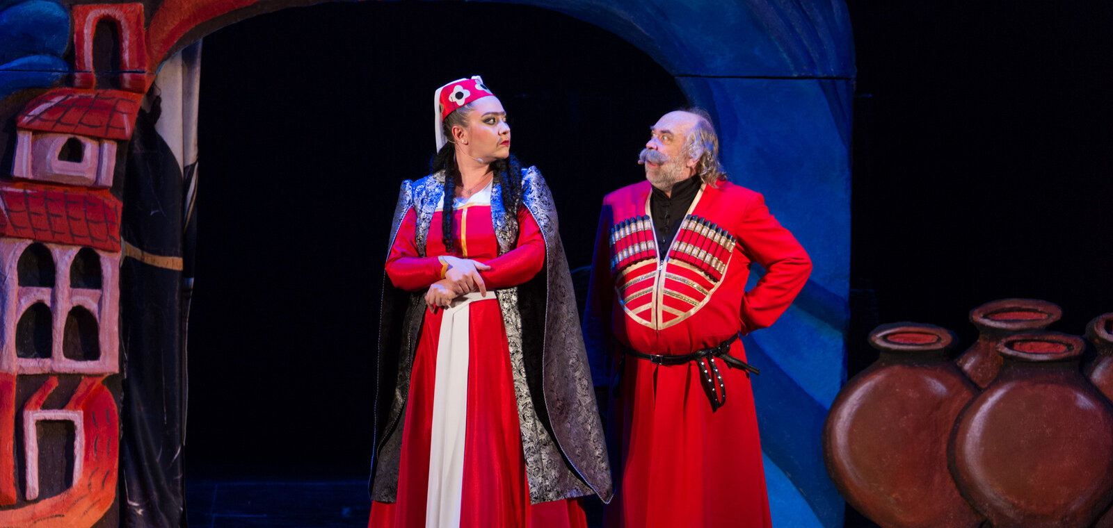 Хотите оказаться в центре веселой и запутанной интриги, случившейся в старом Тбилиси? Классическая музыкальная комедия «Ханума» унесет вас в армянский квартал грузинской столицы конца XIX века. Знаменитая на весь город сваха Ханума имеет планы по поводу женитьбы разорившегося князя Пантиашвили, но в соперничество с ней вступает сваха Кабато, которая не намерена сдаваться. А если прибавить к этой истории молодого влюбленного учителя, честолюбивого купца с мечтою о княжеском гербе, его красавицу-дочку и хитроумного приказчика, то такой клубок под силу распутать только лучшей свахе Авлабара! Хитроумные планы и кавказское веселье, феерию танцев и песен дополнит яркая сценография, вдохновленная образами Нико Пиросмани. В результате закружится история, которая способна поднять даже самое плохое настроение!