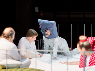 Герои спектакля — самые настоящие подушки, которые живут в детском саду. Они все очень разные, как и их маленькие владельцы — дети, и умеют разговаривать. Вообще, они очень любят поболтать, иногда спорят, помогают и утешают друг друга. А ещё подушки видят сны, которые снятся малышам, о мороженом, каруселях и игрушках. И конечно, мечтают о дружбе и любви, потому что у них есть душа. Но им строго-настрого запрещено разговаривать с ребятами. Вот только, когда правило нарушается, случается самое интересное. «Душа подушки» — это добрый и нежный спектакль, понятный не только ребёнку — ведь все мы когда-то ходили в детский сад. Но самое важное — это смысл, заложенный в сказочной истории: мы очень разные, но каждый достоин любви и нуждается в настоящем друге.