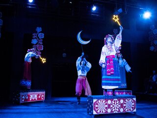 Одна из самых веселых, колоритных и мистических повестей Николая Васильевича Гоголя — «Ночь перед Рождеством» легла в основу одноименного спектакля. Действие разворачивается в Рождественский сочельник на хуторе близ Диканьки, где царит предпраздничное веселье, звенит смех и звучат колядки. Невесело только влюбленному кузнецу Вакуле. На любые безумства готов он ради любви к своенравной красавице Оксане. Чёрта бы оседлал ради нее... Чудесная история о любви, плутовстве и простодушии в красочном лубочном стиле, музыкой, танцами и юмором погружает зрителей в атмосферу Рождества.