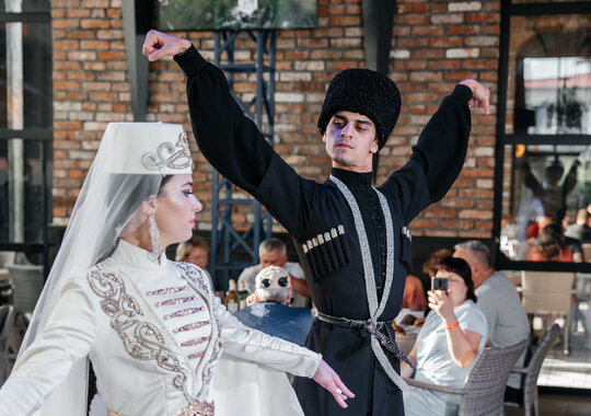 Шоу-программа представит захватывающий и динамичный вечер традиционного осетинского застолья с песнями и танцами, большим выбором качественных кавказских блюд и дегустацией национальной кухни.