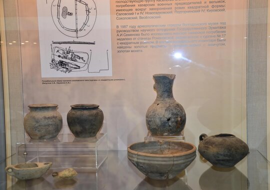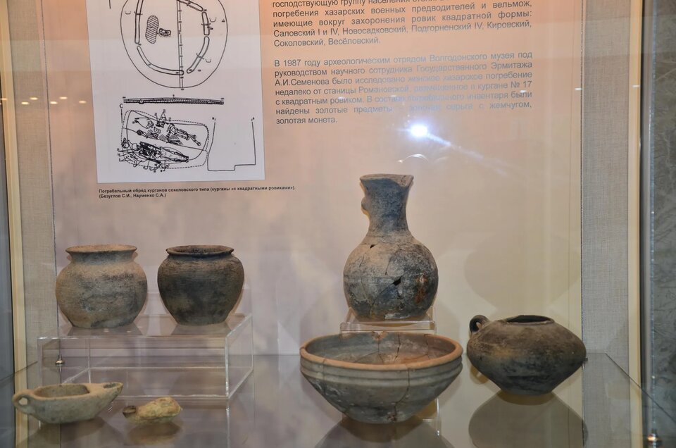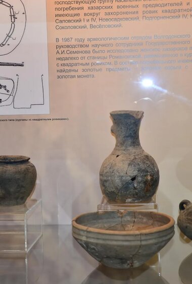Среди экспонатов — подлинные предметы быта, боевое оружие и золотые украшения степных кочевников, реконструкция военно-исторического костюма и снаряжения скифского и сарматского воинов. Жемчужина коллекции — весьма редкое, хорошо сохранившееся деревянное изваяние XII–XIII вв. из половецкого святилища — могильника близ хутора Рябичев Волгодонского района Ростовской области. Всемирно известные исторические памятники федерального значения на территории Донского края — затопленная в 1950-х годах Цимлянским водохранилищем крепость Саркел — Белая Вежа, средневековые хазарские крепости Правобережное Цимлянское и Семикаракорское городища широко представлены в экспозиции. Впервые представлен материал подводных и надземных многолетних археологических исследований уникальных памятников археологии, осуществляемых командой Подводного археологического общества (г. Москва).