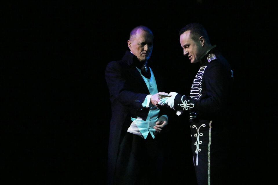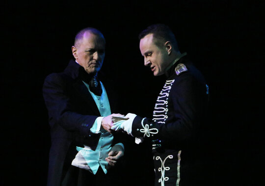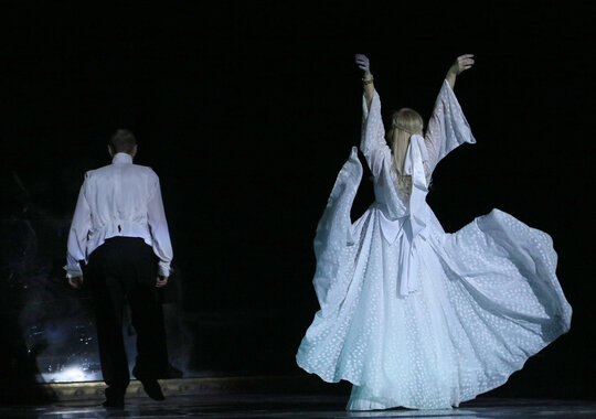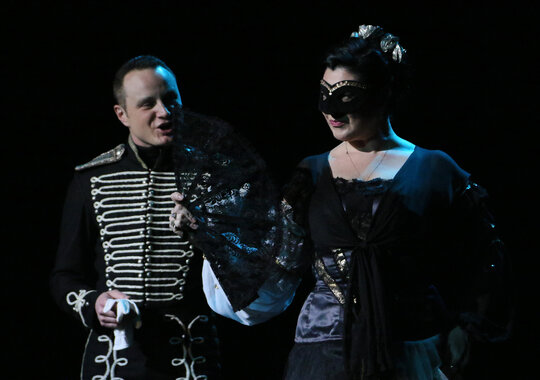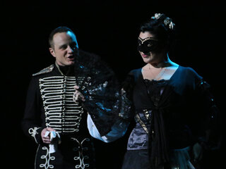 Один из самых легендарных спектаклей НЭТа, который идет на сцене театра с 1993 года с неизменными аншлагами. Изысканные костюмы, блестящая хореография, изумительная музыка и феерические эффекты – все это «Маскарад»! Любовная драма лермонтовских героев Арбенина и Нины получает в спектакле НЭТа глубоко человечную и очень современную трактовку. Арбенин наделен мятежным духом, но живет по законам своего общества. Пытаясь защитить свою честь, ослепленный ревностью и самолюбием, он совершает убийство любимой жены.