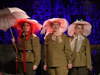 На сцене переплетаются трагические и комические моменты, героизм и нежность, создавая удивительную ткань повествования о тех, кто ценой собственной жизни отстоял свободу и независимость нашей Родины и остался вечно молодым.