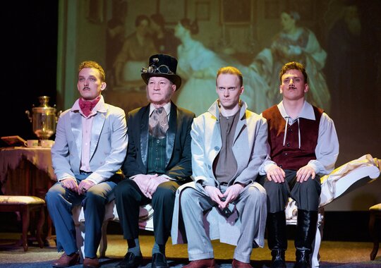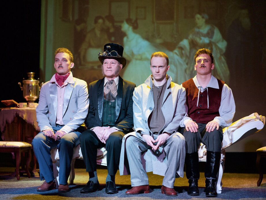 Объезжая окрестных помещиков Манилова, Собакевича, Коробочку, Ноздрева, Плюшкина, Павел Иванович выторговывает у них довольно-таки странный, но весьма, как оказывается, ценный товар: мёртвые души. Чичиков очень ловок: обманом, лестью и заискиванием находит подход к местным помещикам и легко становится желанным гостем у каждого...тем не менее, в конце спектакля, оказавшись на волоске от разоблачения, вынужден спешно покинуть город.