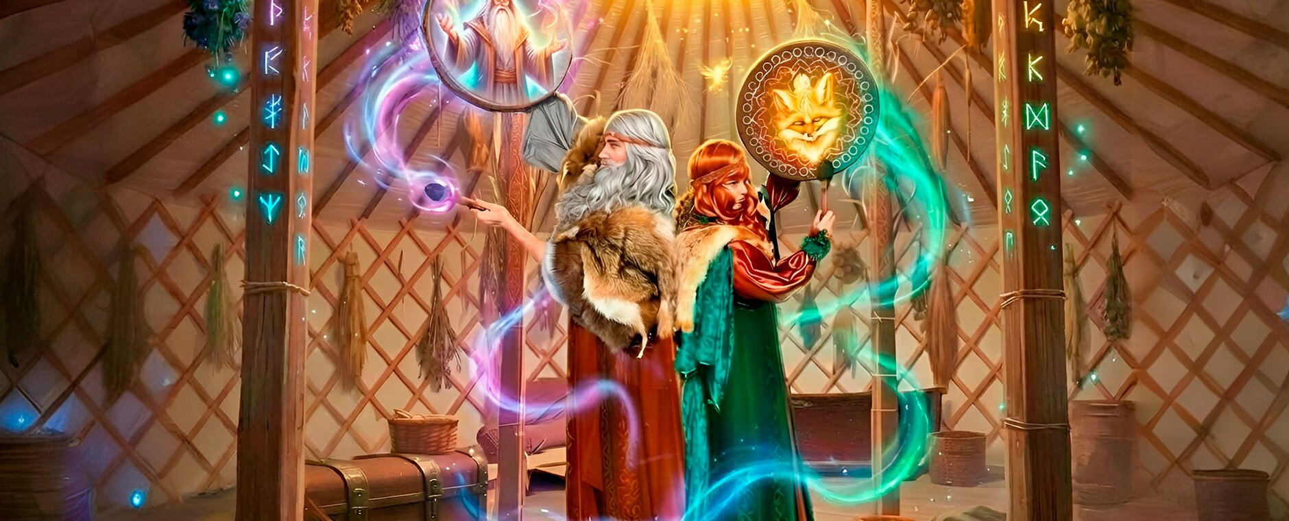 Театрализованное шоу с дедом Зимником и лисой-шаманкой в настоящей юрте в сосновом лесу.