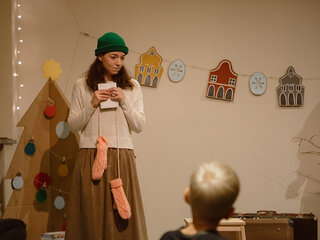 Каждую историю вы сможете унести с собой — маленький сувенир напомнит о том, что вы услышали и увидели, и поможет рассказать нашу историю кому-то ещё. А после путешествия будут подарки от Деда Мороза и сладости! В домашнем буфете можно будет всем вместе попить чаю, какао, а взрослым — глинтвейна, поесть пряников и конфет. А ещё будем читать стихи на сцене-табуретке!