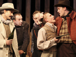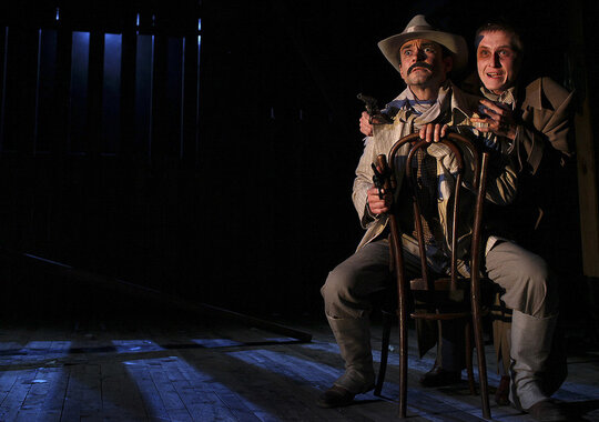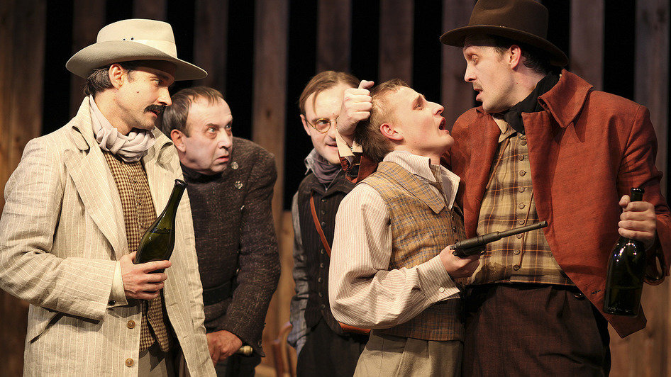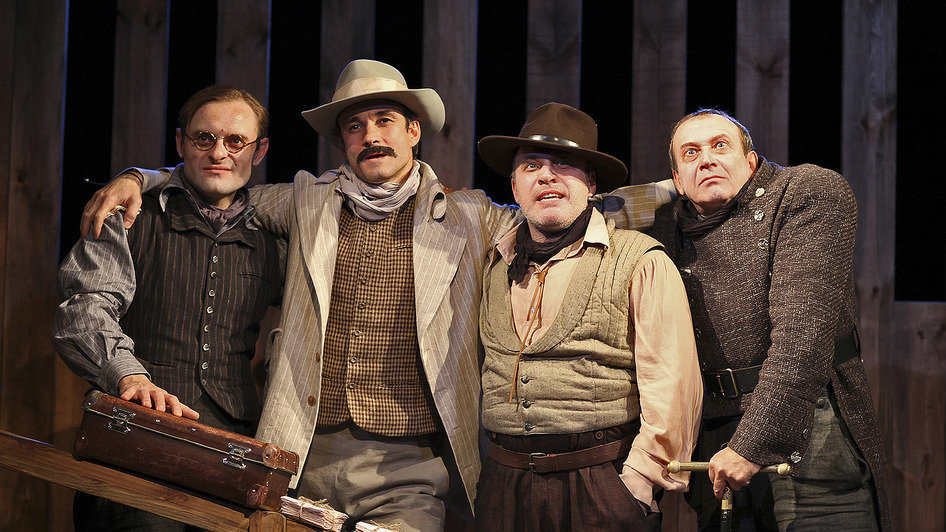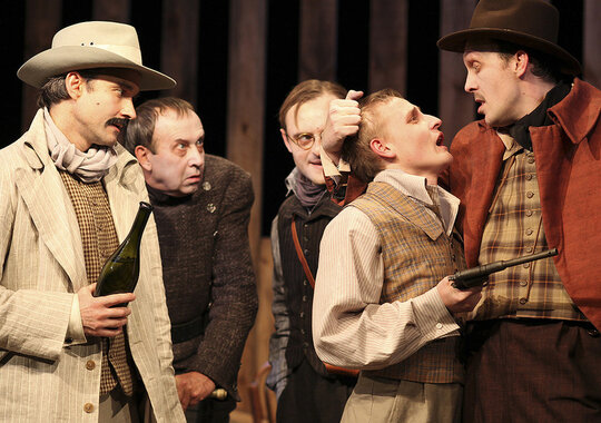 Гоголевский сюжет разыгран в жанре вестерна. Ихарев — одинокий ковбой, провинциальная гостиница с клопами — салун. Но сквозит через стену неотесанных досок на сцене нечто родное, заповедное, мистическое.