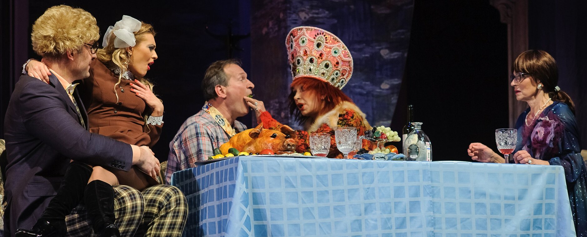 Всеми любимый анекдот «Муж возвращается домой…». Но нет! В нашем спектакле всё наоборот. Жена возвращается домой и застаёт супруга с молодой, привлекательной девушкой…