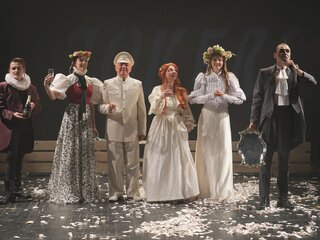 «Шутники» — спектакль об изломах души человеческой, о поиске любви в мире, где всё продаётся и покупается.