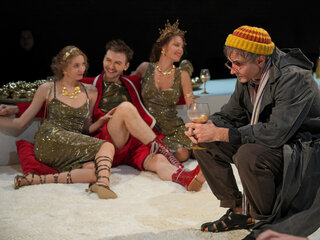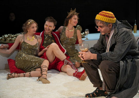 «Тимон Афинский» — пьеса классика мировой литературы Уильяма Шекспира о легендарном афинском мизантропе Тимоне. Её редко ставят, мало кто цитирует её наизусть, а многие даже не знают о существовании этого текста. Пьесу считают одной из самых странных работ драматурга — неоконченной, проблемной, экспериментальной. Игровая природа текста, её открытость интерпретациям и диалогу позволила режиссёру спектакля превратить трагедию в остроумную и актуальную трагикомедию о величии и ничтожности человека.