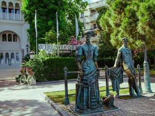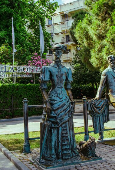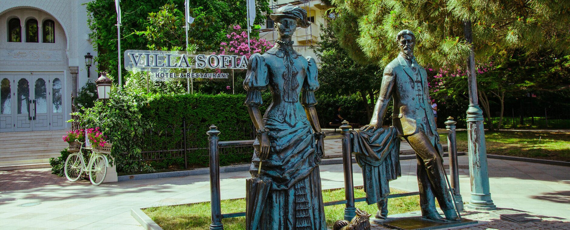 Спектакль-променад — это уникальная возможность прогуляться по Ялте и узнать её историю в компании Чехова, Горького, Бунина в окружении самых масштабных декораций в истории театра: набережной Ялты, исторических зданий и парков.