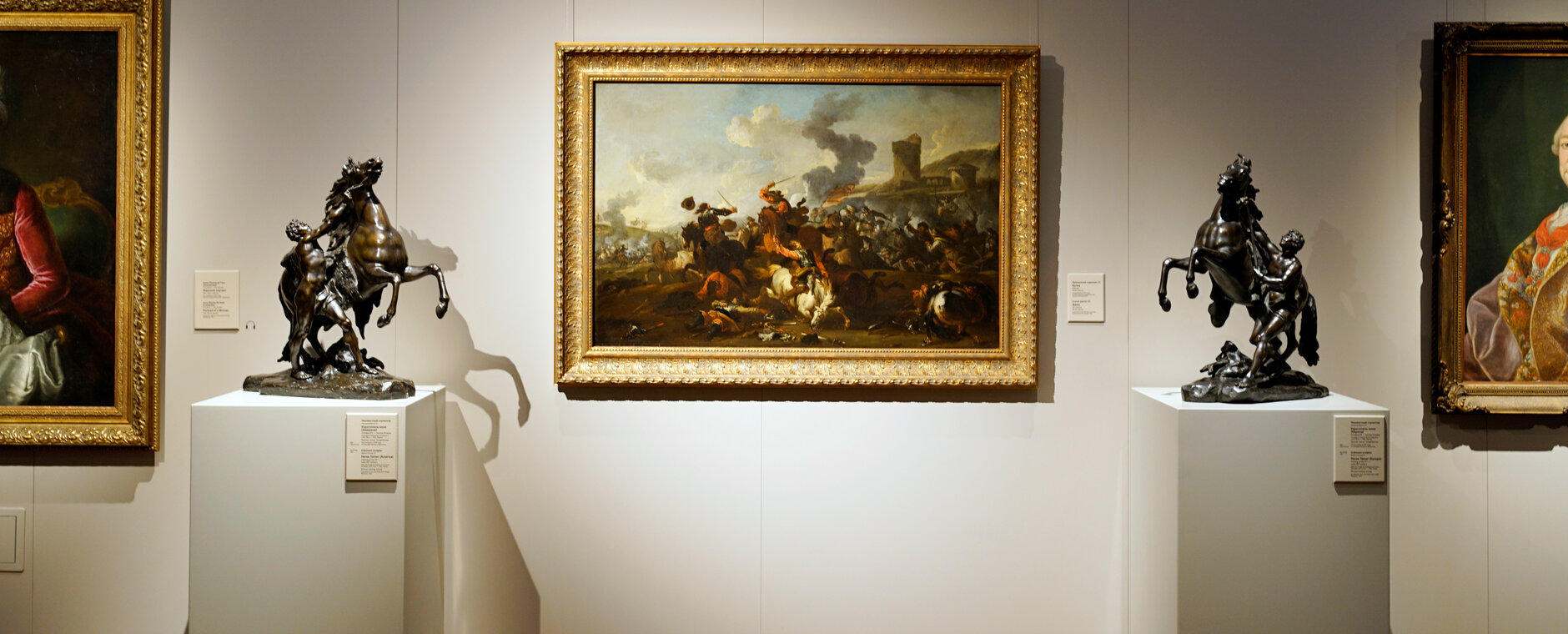 Раздел изобразительного искусства охватывает период с конца XV до начала XX века. Он будет представлен в обновленном варианте: состав увеличен практически вдвое, что позволяет полнее и многограннее представить общую картину развития западноевропейского искусства. Почти 100 произведений (живопись и скульптура) — настоящие жемчужины коллекции — знакомят с искусством ключевых национальных школ: итальянской, голландской, фламандской, французской и немецкой. Они помогают проследить классическую линию развития европейского искусства на протяжении пяти столетий и познакомиться с работами мастеров Ренессанса, барокко, классицизма, рококо, эпохи Просвещения, неоклассицизма, ампира, романтизма, реализма, модерна. Собрание отличает жанровое многообразие: религиозные и мифологические сюжеты, батальные и бытовые сцены, портрет, пейзаж и натюрморт.