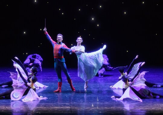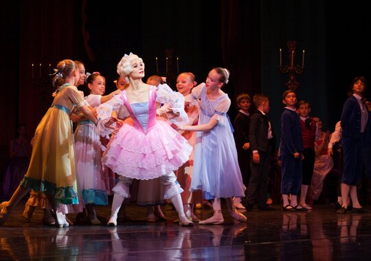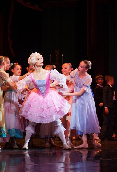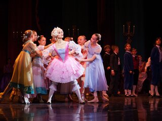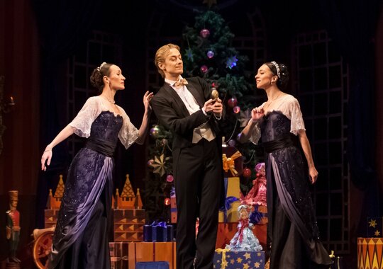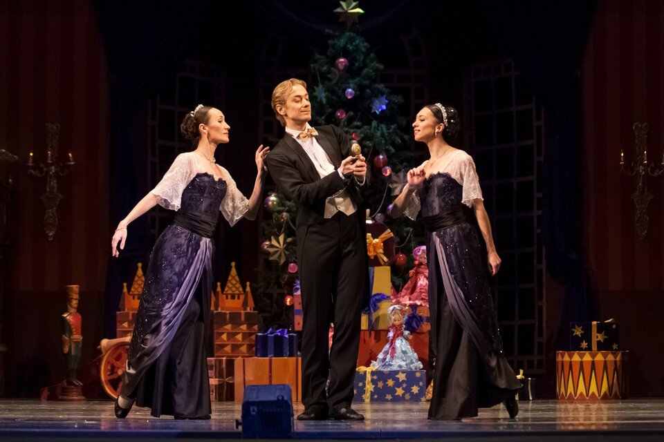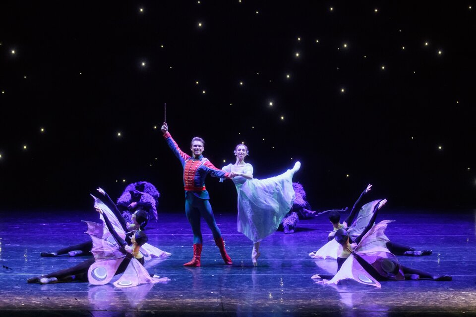 «Щелкунчик» не нужно долго представлять — как не нужно объяснять, что такое Новый год. Играет по-моцартовски прозрачная увертюра, падает снег, медово светятся окна дома Штальбаумов, а в доме горит огнями рождественская ёлка. Потом ёлка вырастает, пряничные солдаты сражаются с крысами, кукла для колки орехов превращается в принца, и все отправляются в страну сластей.