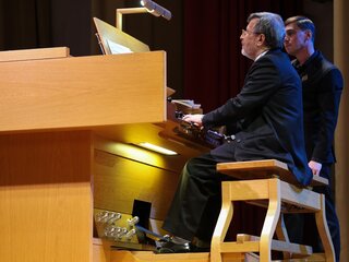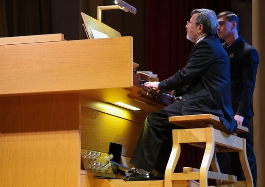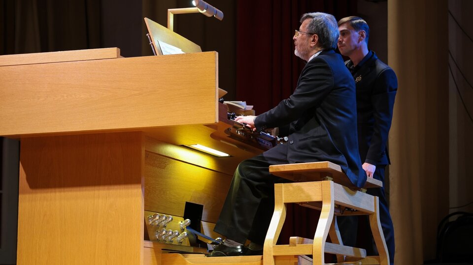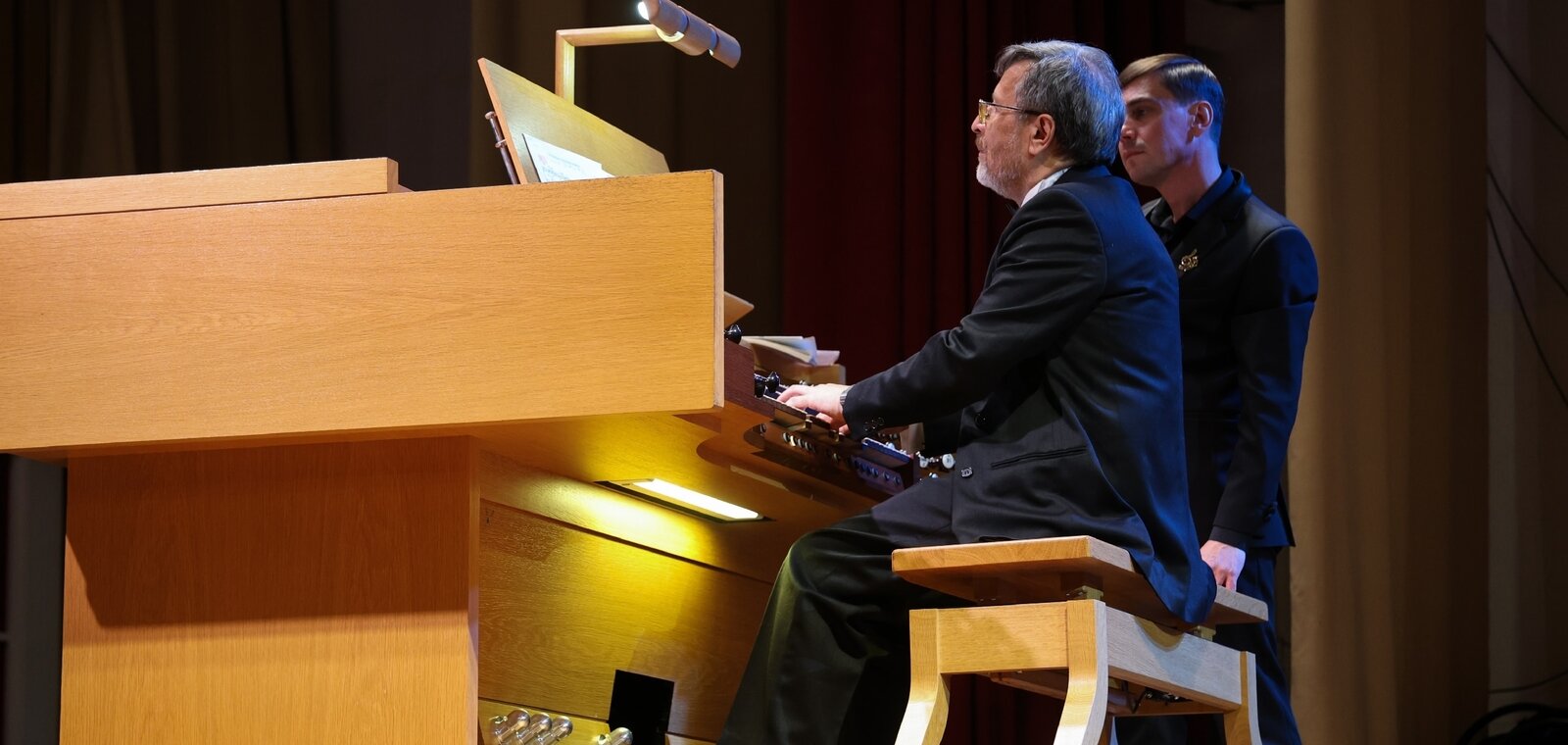 На сцене — Анатолий Маршалов (орган) и Ульяна Заитова (меццо-сопрано).