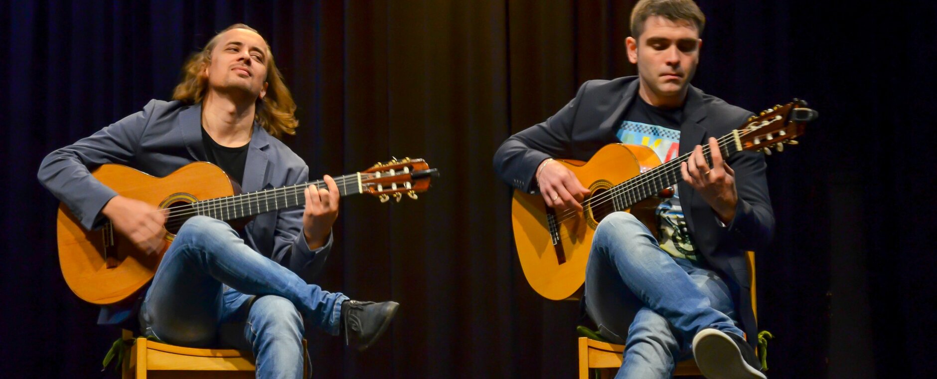 Программа сочетает популярные мировые хиты, музыку разных народов и авторское творчество. Музыканты представят оригинальные попурри и смелые стилистические эксперименты, объединяющие классику и рок (например, AC/DC и Баха), а также обработки хитов легендарных исполнителей — Джорджа Майкла и Майкла Джексона. Также прозвучат колоритные попурри на русские, греческие, цыганские и еврейские народные темы. Особое место в программе занимают собственные произведения дуэта — лиричные, образные и эмоционально насыщенные композиции, раскрывающие многогранность звучания двух акустических гитар.