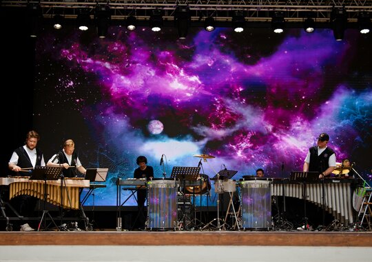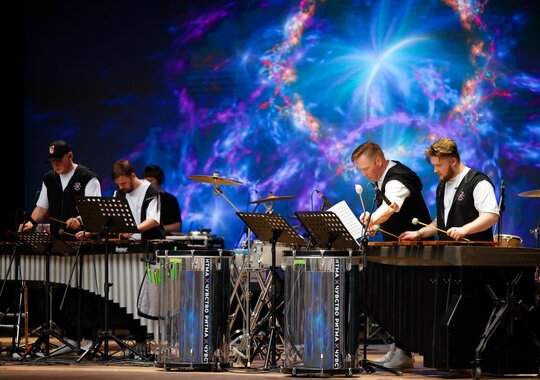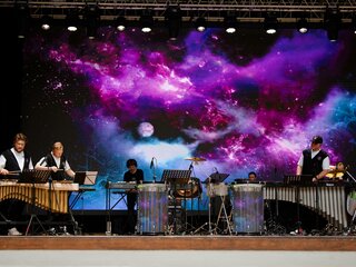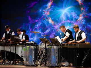 Музыка, посвящённая полётам, космическим путешествиям и покорению Вселенной! Динамика, масштаб, звуковые и световые спецэффекты — синтез музыки и мультимедийного шоу — путешествие сквозь Вселенную и прыжок в гиперпространство музыки и звука! В программе — саундтреки из кинохитов о космосе и новое звучание космических мелодий, знакомых с детства, в аранжировке для ударных инструментов!