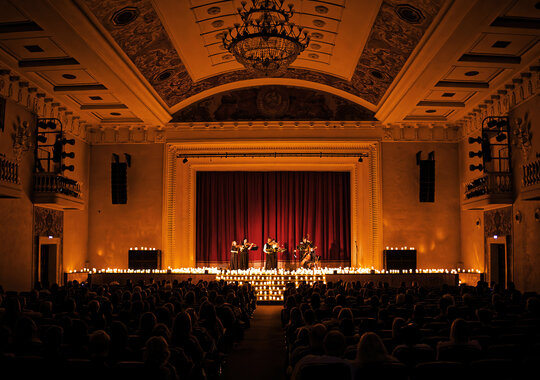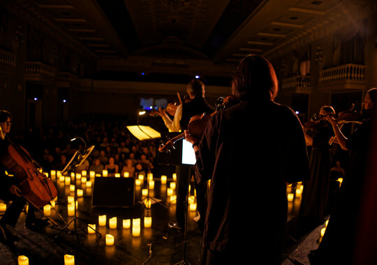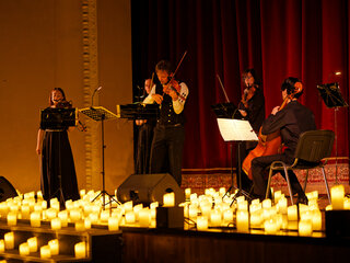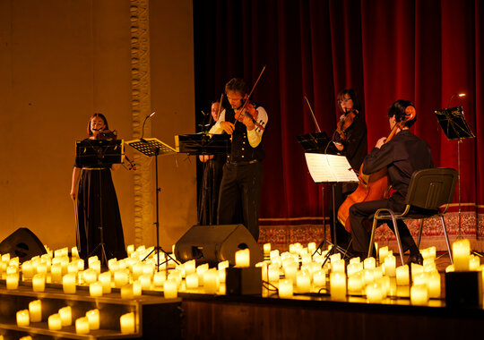 Всё это — в живом исполнении струнных, в обволакивающем тепле свечей, в полумраке, где каждый звук — как луч света на холсте. А вы, затаив дыхание, станете частью этой переменчивой музыки — как будто природа дышит через вас.