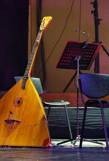 Во многих тюркских языках слово «балалайка» означает «ребёнок». Может быть, поэтому так комфортно чувствуют себя наши юные слушатели рядом с балалайкой? У неё всего три струны, но как виртуозно играет на них музыкант! Сыграет сам, а вместе с ним непременно и наши любознательные исследователи симфонического оркестра!