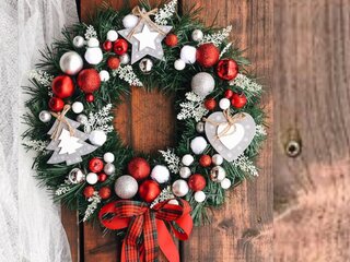 На выбор будут десятки видов декора: шишки, бадьян, корица, хлопок, апельсинки, а также невообразимое количество шариков всех цветов и оттенков! Наш профессиональный мастер покажет вам технологию и поможет создать ваш шедевр. Венок настолько прост в изготовлении, что справятся даже дети!