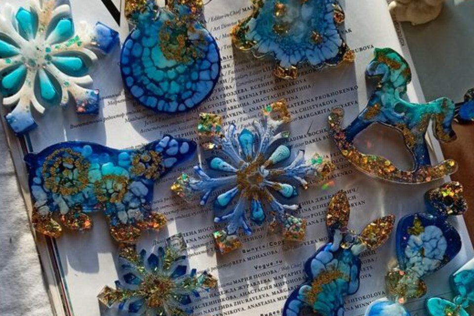 Создание ёлочных игрушек своими руками — это не только возможность сделать вашу ёлку уникальной и непохожей на все другие, но и прекрасное времяпрепровождение, помогающее создать новогоднее настроение. На выбор будет представлено большое количество блесток и декоративных наполнителей, а смолу можно будет окрасить в разнообразные оттенки.