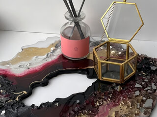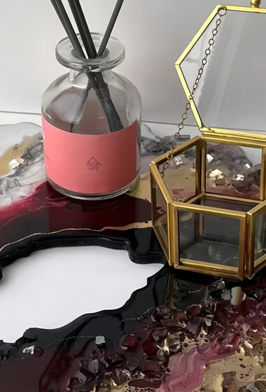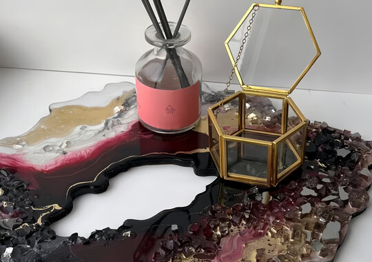 Жеода — представляет собой округлый камень с полостью, внутри которой разрастаются кристаллы. С помощью смолы, пигментов, специальных красителей и наполнителей вы создадите собственную жеоду, имитирующую срез мрамора. Вплетаясь в интерьер, она станет ярким акцентом и создаст уют в вашем доме.