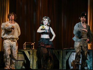 Спектакль идёт в сопровождении оркестра Свердловского театра музыкальной комедии.