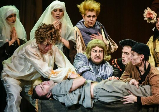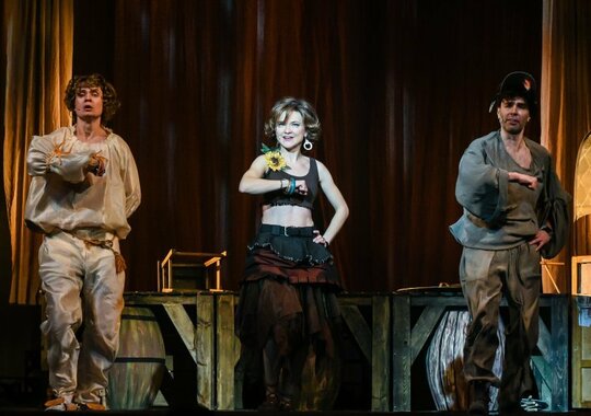 Разумеется, музыкальное одеяние спектакля скроено заново по современным мюзикловым лекалам и дополнительно украшено несколькими блестящими хитами из богатого наследия Доменико Модуньо, мелодии эти зритель узнает с первых трёх нот.