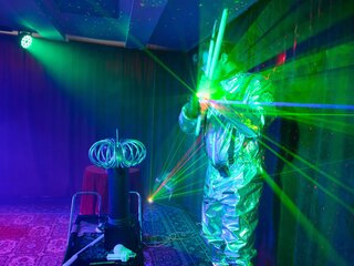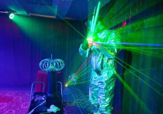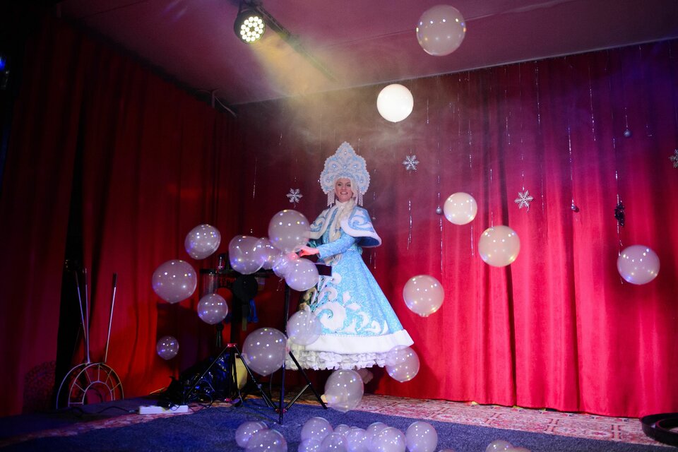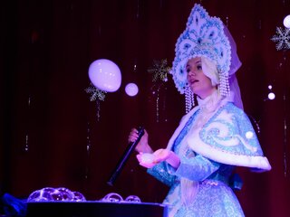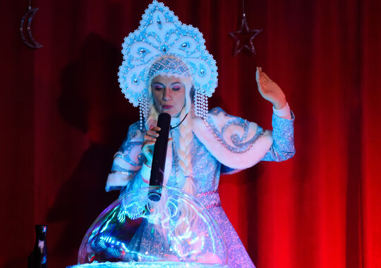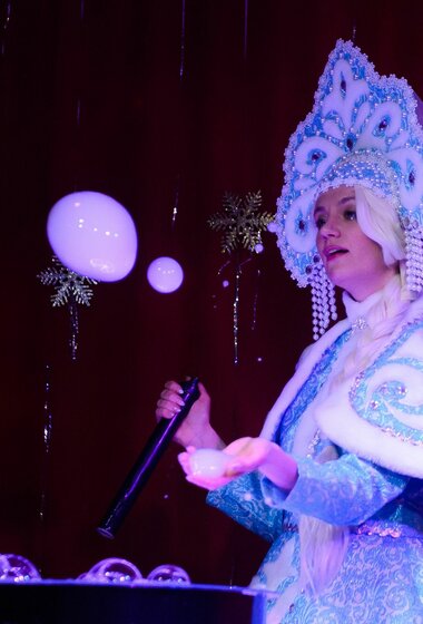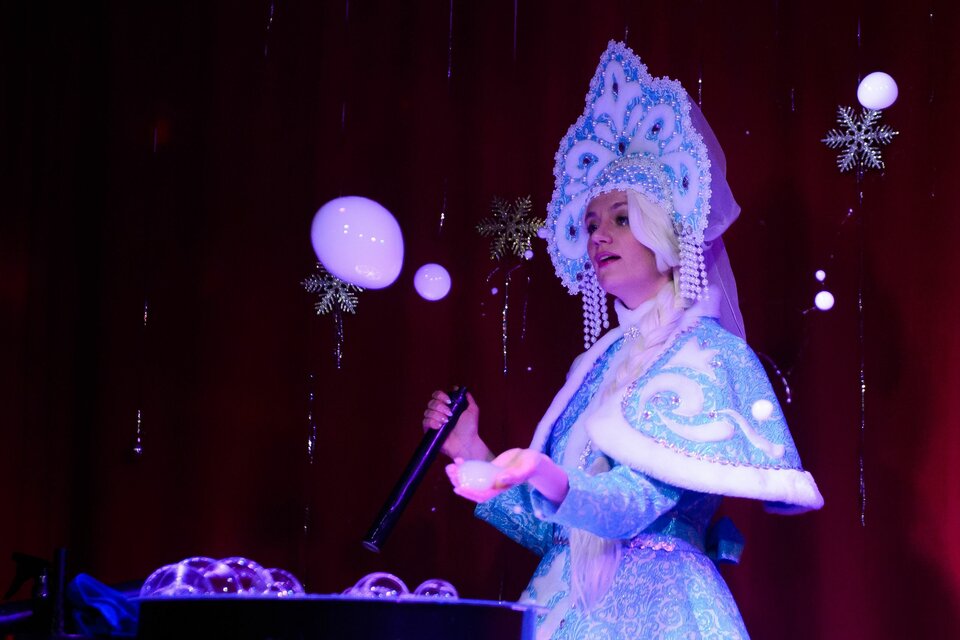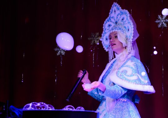 Конкурсы с призами, снежное шоу мыльных пузырей, яркое тесла-шоу, а также увлекательная экскурсия про историю Нового года. Угощение и напитки, и, конечно, Снегурочка и Дед Мороз.