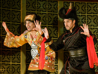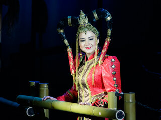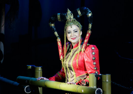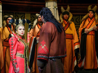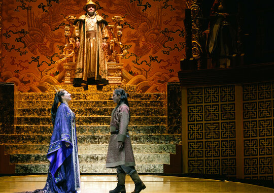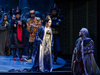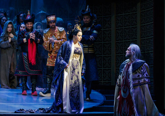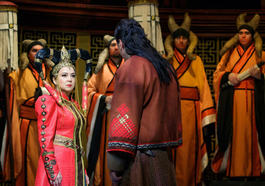Урал Опера обращается к первому по времени, традиционному финалу авторства Франко Альфано — счастливому финалу, в котором неприступная китайская принцесса отвечает на поцелуй Неизвестного принца, претендента на её руку, отгадавшего три её загадки и таким образом избежавшего казни. Дебютирующий в Екатеринбурге французский режиссёр Жан-Ромен Весперини и художник Дирк Хофакер (он работал над постановкой «Евгения Онегина») создали на сцене образ сказочного средневекового Китая во всём восточном великолепии и богатстве.