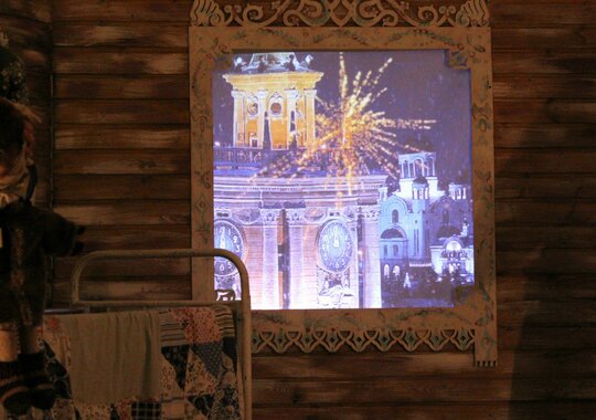 Мы отправимся в страну детства наших бабушек и дедушек, когда из трубы паровоза шёл пар, а вместо телефонного звонка отправляли телеграммы. История двух мальчиков в декорациях таёжной избушки, рассказанная Мамой и Папой. Куклы, оживающие предметы, поезда-чемоданы, театр теней, сны и песни. Настоящая гитара и танцы под патефон. Путешествие на санях и встреча с Медведем. А в окошке нашей избушки маленькие мультфильмы, нарисованные специально для нашей новогодней истории.