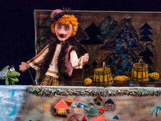 Кукольный спектакль-фантазия по мотивам русской народной сказки «По щучьему велению» для детей 4-12 лет. Давным-давно, а может и не так уж давно... В некотором царстве-государстве... А может быть и не «в некотором», а в нашем царстве-государстве, жил был Емельян Севцов по прозвищу Пустомеля! Жил себе и жил, ничем особым не отличался, разве что любил поспать, а ещё любил сказки рассказывать. И всё мечтал! Представлял себя царем морским, да будто жена у него русалка красоты неземной! Так бы и жил Емеля ни о чём не печалясь, кабы ему за пазуху говорящая щука однажды не попалась! Что тут началось! Чудеса посыпались на Емелину буйную головушку, как из дырявого ведра! А чудесам стоит только начаться, не остановишь! И куда они Емелю заведут? И как он, Емеля выкрутится? Смотри сказку, да мотай на ус!