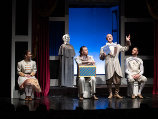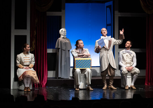 Зрителя ждет нескучная встреча с персонажами шести остроумных крыловских басен и самим классиком русской литературы.