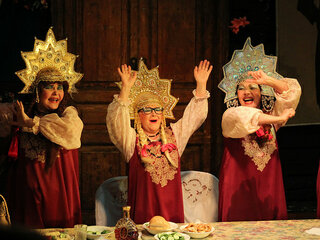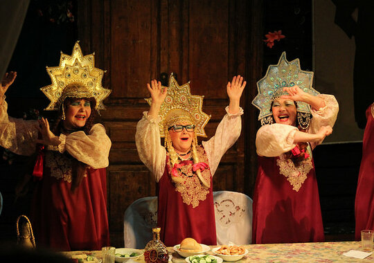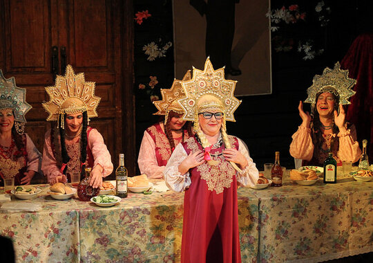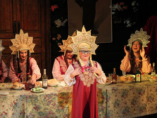 Весёлое застолье рушится с появлением Розы — новой участницы ансамбля, которой уготована роль солистки. Искромётные диалоги, красочные костюмы, музыка, песни и танцы — всё есть в этом спектакле. Зрителям будет над чем посмеяться, а в конце (ведь на то и существует театр!), может быть, и всплакнуть. Ведь спектакль этот о нас с вами — о любви, о жизни, о вечных поисках счастья каждым человеком.