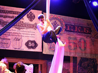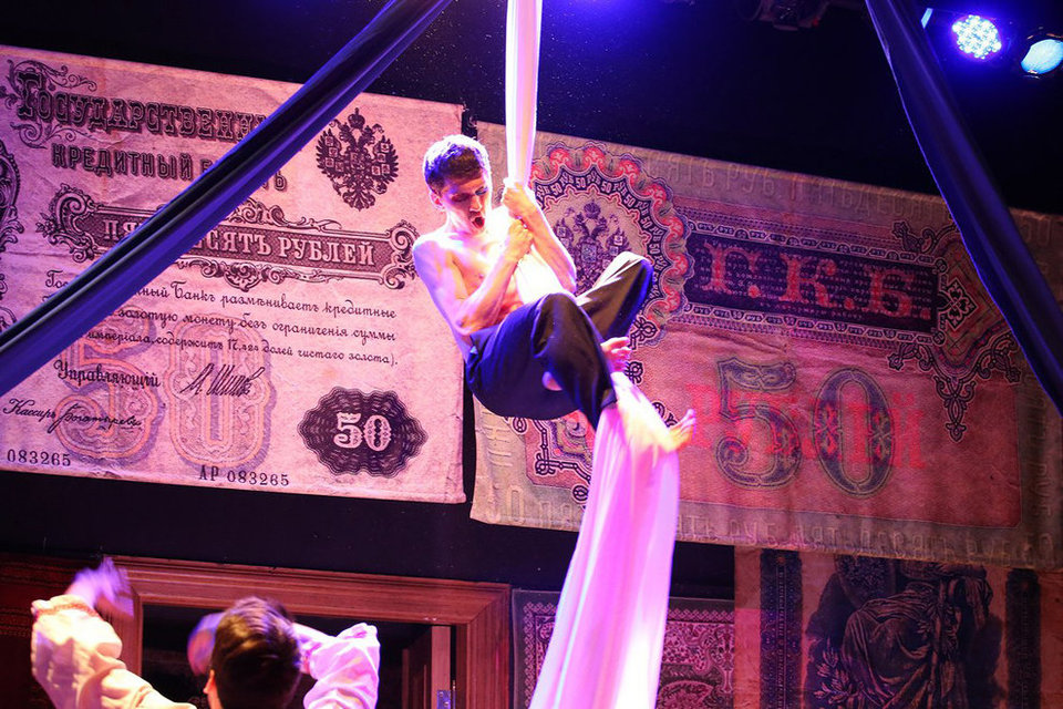 Новый спектакль «Коляда-Театра» поставлен по пьесе Е.Бронниковой и Н.Коляды, написанной по мотивам повести Л.Н.Толстого «Фальшивый купон».