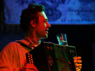 25 актеров занято в новом спектакле театра. Спектакль про Россию: про то, куда она мчится, про то, куда идут эти шеренги в шинелях – на каторгу, на виселицу, или ищут солнце и счастье под небом. В спектакле много русских песен – грустных и веселых. И танцы русские, которые, скорее, не танцы, а - босиком по горящим угольям. Как у Есенина: