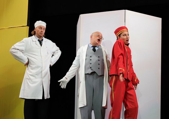 Мир жесток и бессердечен, и театр обязан серьёзно относиться к своему творчеству. Но что может быть серьёзнее смеха и что может быть более сильным оружием против уныния и депрессии, чем комедия. Спектакль Я ваша мать в постановке театра ТургеневЪ – яркая, динамичная комедия положений, как ей и положено быть по замыслу автора. Место действия – психиатрическая клиника, где не лечат безумие, а лишь высвобождают его. Молодая девушка приходит сюда наниматься секретаршей. Действие развивается по цепочке смешных нелепостей, ошибок, переодеваний, все совершается в один безумный день. И пусть зрителя не смущает место действия, ибо режиссёром это сценическое пространство решено как яркий уютный мир, где комфортно и артистам, и зрителям. Сногсшибательный комедийный каскад самых невероятных ситуаций, с быстротой молнии сменяющих друг друга, сочетается с безукоризненным чувством стиля режиссёра Михаила Пазникова. Именно стиль отличает эту комедию от многих других подобных по жанру и делает гомерически смешной фарс с переодеваниями настоящим театральным шедевром.