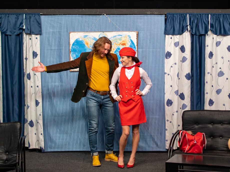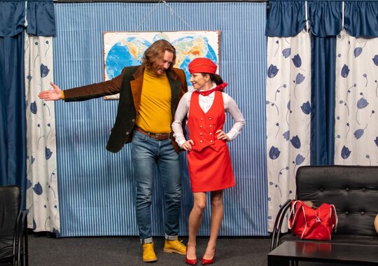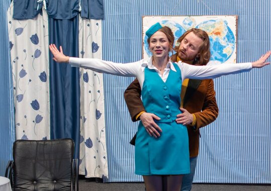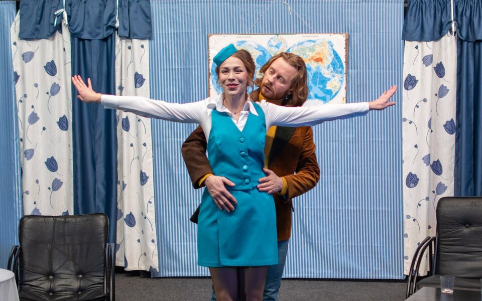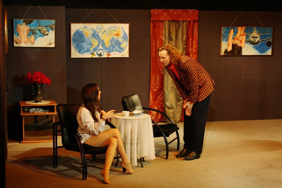 Молодой и востребованный в разных частях света архитектор Бернар часто летает самолетами различных международных авиакомпаний. Бернар чертовски обаятелен и имеет явно выраженную слабость к женскому полу. Будучи отъявленным ловеласом, он с легкостью крутит романы сразу с несколькими дамами. И до поры до времени ему это отлично удается, потому что его возлюбленные работают стюардессами и живут, что называется, «по расписанию». Но однажды отлаженная система дает сбой, и жизнь Бернара превращается в череду комических ситуаций, из которых он не может выбраться даже с помощью своего преданного друга Робера. Зрители же с искренним восторгом наблюдают за любовными недоразумениями героев по-настоящему смешной комедии положений, сочиненной драматургом лишь с одной целью — заставить людей смеяться до слез.