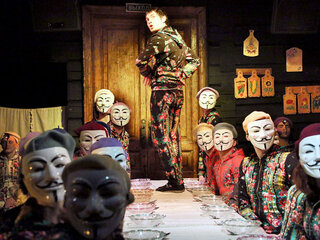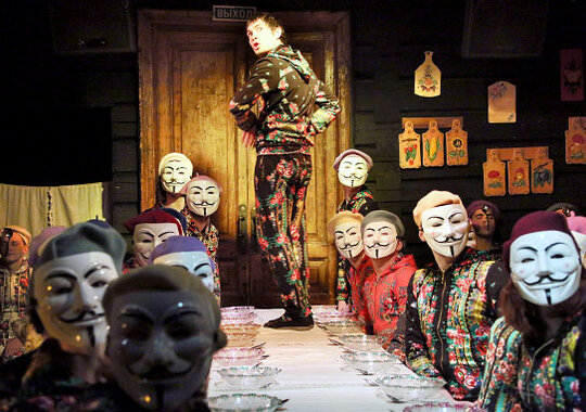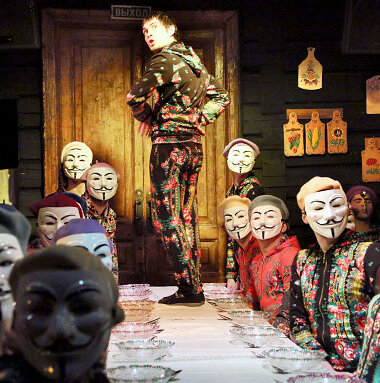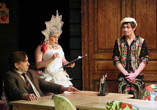 В этом спектакле путешествующий по России Павел Иванович Чичиков является нам не осторожным и хитрым чиновником, а циничным прощелыгой, молодым хитрецом и обманщиком, похожим, скорее, на Хлестакова. Он запросто обводит вокруг пальца не один десяток человек, вовлекает всех в свои махинации, легко и играючи делает состояние из воздуха, зарабатывает себе на хлеб с икрой и не тяготится понятиями чести и совести.