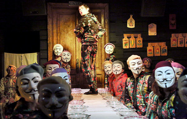 В этом спектакле путешествующий по России Павел Иванович Чичиков является нам не осторожным и хитрым чиновником, а циничным прощелыгой, молодым хитрецом и обманщиком, похожим, скорее, на Хлестакова. Он запросто обводит вокруг пальца не один десяток человек, вовлекает всех в свои махинации, легко и играючи делает состояние из воздуха, зарабатывает себе на хлеб с икрой и не тяготится понятиями чести и совести.