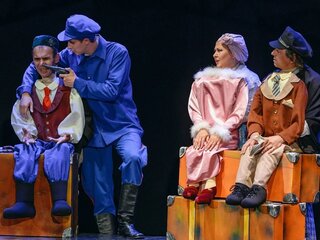 В Максим Холле Театра эстрады невероятным образом встретятся любимые всеми писатели-шутники Аверченко и Тэффи, которых на перроне железнодорожной станции провожают Зощенко и Олейников.