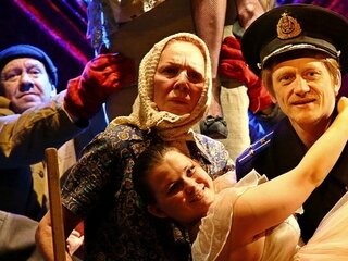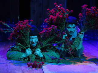Новый спектакль «Коляда-Театра» как раз и построен на этом контрасте: прошлое и будущее. Для кого гибли те люди? Что выросло, что стало с нами со всеми? Видят ли они, герои гражданской войны, делавшие революцию, нашу нынешнюю жизнь и улыбаются ли нам с небес? Что стало с Россией за эти сто лет после революции?