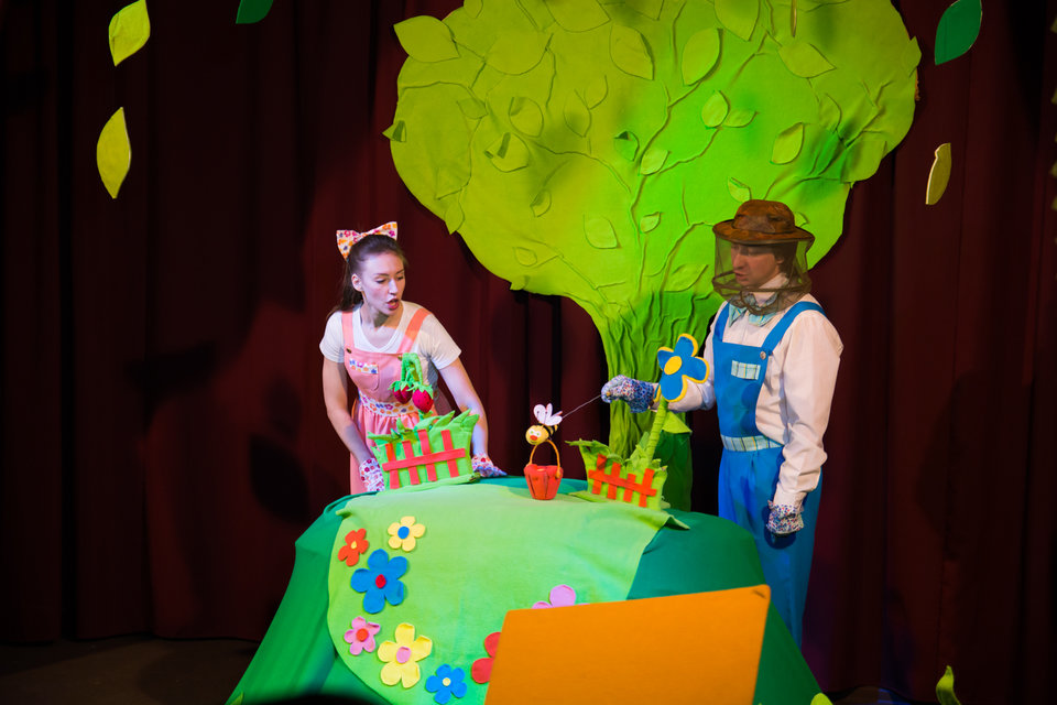 Спектакль — Общение, где ребята принимают непосредственное участие, пробуют себя в роли лягушек и пчёл с настоящими театральными куклами. После спектакля возможно близкое знакомство с героями сказки и фото на память.
