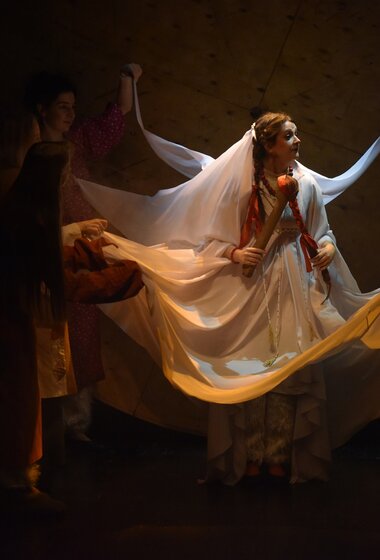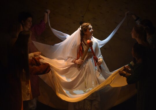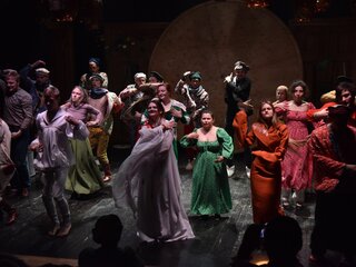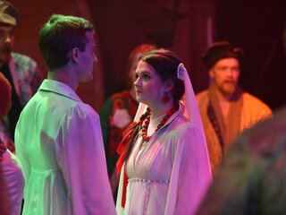 А как на ярмарке без веселья, без радости, без танцев и песен? В новом спектакле театра всего этого вдоволь: и широты веселья народа, и веры его в странные дела, что творятся на свете. И, несмотря на все козни нечистой силы, всё заканчивается хорошо: свадьбой Параски и Грицко, на которой гуляет вся Сорочинская ярмарка.