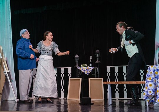 В основе спектакля Театра «Колесо» пьесы — шутки А. П. Чехова «Медведь» и «Предложение».