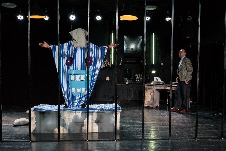 Действие в спектакле по пьесе всемирно известного ирландского драматурга Мартина МакДонаха «Человек-подушка» происходит в полицейском участке, в комнате дознания. Двое профессиональных полицейских расследуют ряд серийных убийств, в которых подозреваются писатель Катурян и его старший брат Михал.