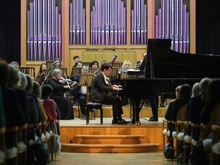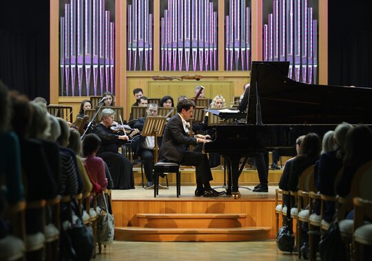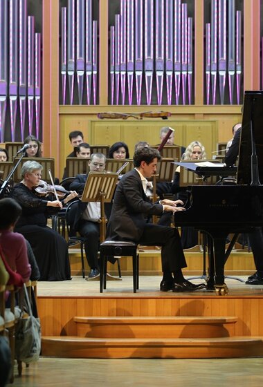 Исполнители: — Кубанский симфонический оркестр и его главный дирижёр, заслуженный деятель искусств Краснодарского края Денис Ивенский; — Солист — лауреат международных конкурсов Константин Емельянов (фортепиано). Пианист активно концертирует и принимает участие в музыкальных проектах и фестивалях, среди которых: Международный конкурс им. П. И. Чайковского, Международный фестиваль «Великие сонаты ХХ века» в Генуе (Италия), Международный фестиваль памяти С. В. Рахманинова, Международный фестиваль «Звёзды на Байкале» и многих других. В программе: — Людвиг ван Бетховен — Концерт для фортепиано с оркестром № 3 до минор op.37; — Мануэль де Фалья — «Ночи в садах Испании».